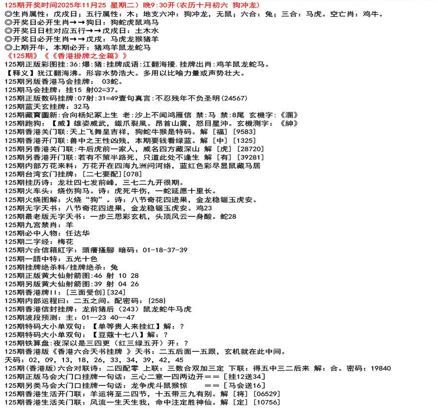 111期开奖时间2022年12月29日(星期四) 晚9:30开 (腊月初七 龙冲狗)